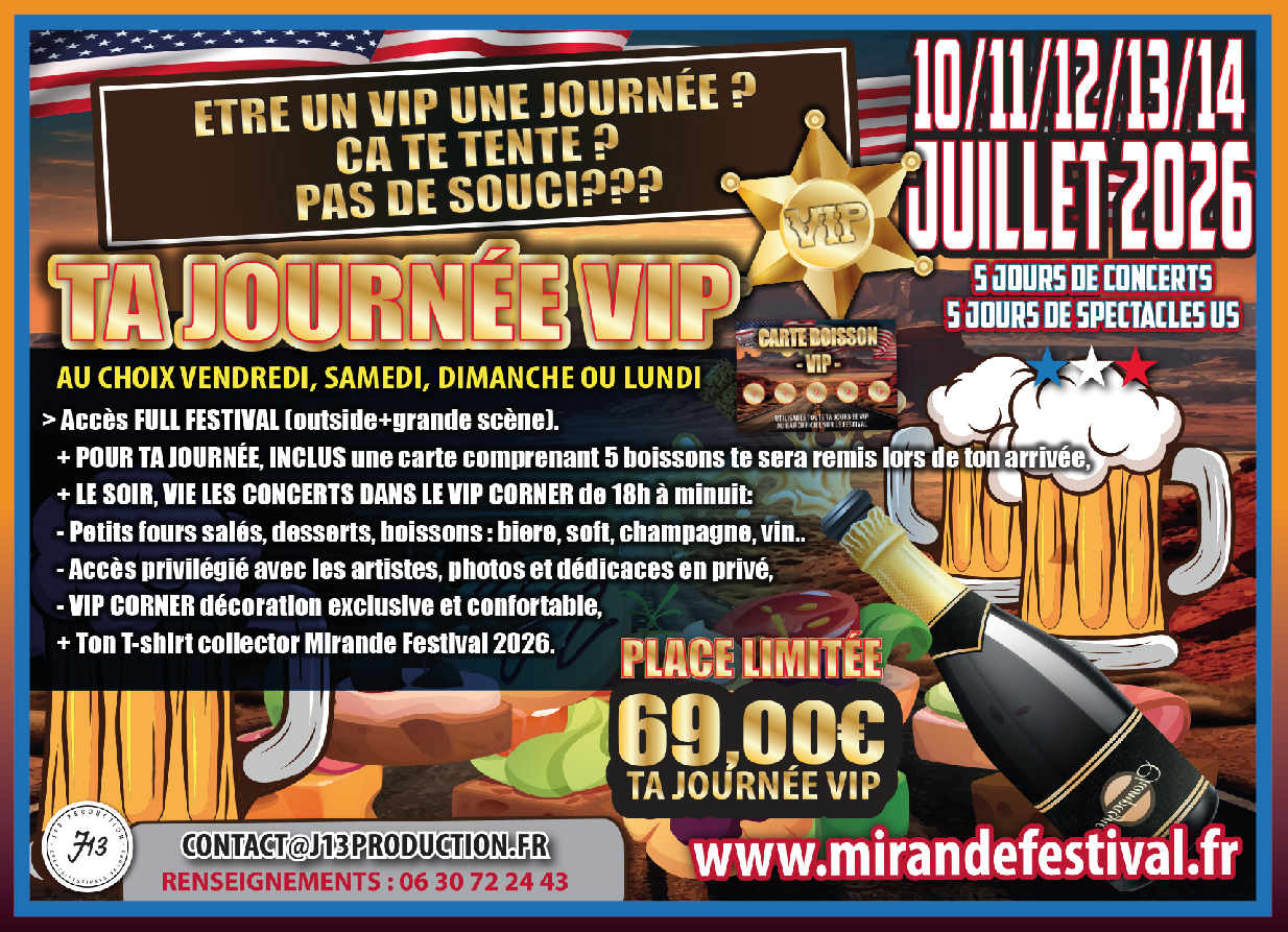 Horaires ouverture au public 5 JOURS DE FESTIVAL MIRANDE FESTIVAL :